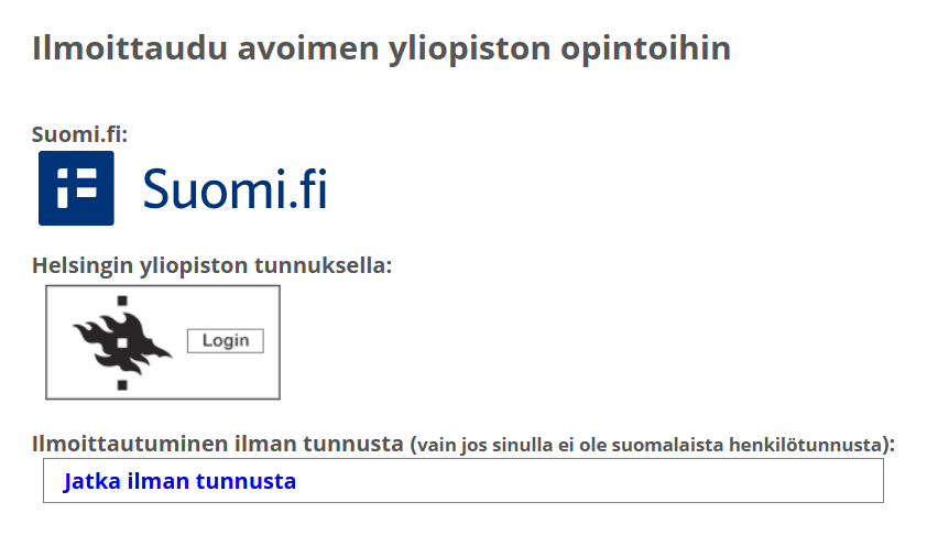 3. Painiketta klikkaamalla pääset Avoimen yliopiston ilmoittautumisjärjestelmään. Valitse kirjautumistapa: